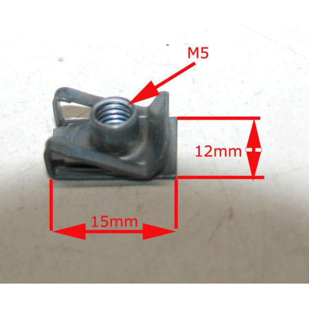 Clip écrou 15x12mm pour vis diamètre 5 épaisseur de tôle 0,5-4mm